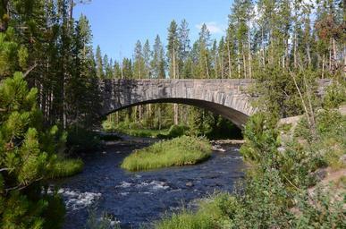 Keywords: bridge stone stream creek landscape scenery water nature scenic foliage forest outdoor peaceful summer trees