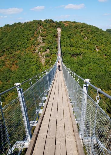 Keywords: bridge suspension bridge cross steel cables building outlook connect connection geierlay hunsrück pedestrian architecture