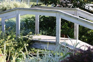 Keywords: bridge walkway landscape water pathway white wash scenic path nature
