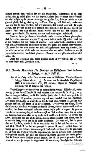 | Keywords: Briefwechsel Hildebrand Veckinchusen 189.jpg  Hildebrand Veckinchusen Briefwechsel eines deutschen Kaufmanns im fünfzehnten Jahrhundert http //books google com/books 3fid 3d8chAAAAAIAAJ printsec 3dfrontcover dq 3dVeckinchusen hl 3dde century 14 Wilhelm Stieda Ed Author died more than 70 years ago - public domain PD-old Briefwechsel Hildebrand Veckinchusen |