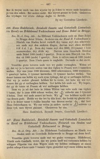 Keywords: Briefwechsel Hildebrand Veckinchusen 447.jpg 446 448