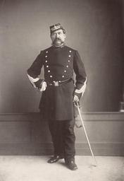 | Keywords: Brigadier de Gardiens de la paix.jpg Photograph Creator Hippolyte-Auguste Collard en City Police Préfecture Paris en Brigadier de Gardiens de la paix Portrait of a man whole-length full face handlebar moustache wearing uniform of three-quarter length jacket frogging on sleeves buttons down both sides of chest peaked cap sword in left hand right hand holding gloves on his hip depicted people depicted place between 1876 1880 albumen silver 66 5 x 57 cm accession number H87 208/33 SLVIC-digitalimage 273521 H87 208/33 Album with leather covered cardboard covers 148 cardboard leaves holding 69 albumen silver print photographs on one side of leaf only Individual titles and official photographer stamped below image Title embossed on front cover with seal of the City of Paris in gilt ink ; title also on spine Label inside front cover reads Presented to the Public Library c Victoria on the eighth day of April 1881 by the Government of France Hand inscribed note on first page of album upper left Presented April 8th 1881 illegible Photographs various sizes 38 x 27 cm and smaller <br> Album was designed to show the use of photography in the solving of crimes and disasters Gift of the French Government possibly following the International Exhibition of 1880 <br> Official photographer's stamp on each page lower left some images dated 1876 and 1880 One photographer identified Hippolyte-Auguste Collard Institution State Library of Victoria object history exhibition history credit line Gift; Government of France; 1881 Information field Author Préfecture de police de Paris Service Photographique PD-100 Gardien de la paix Police officers in Paris Ville de Paris Préfecture de police Images of Paris from the State Library of Victoria |