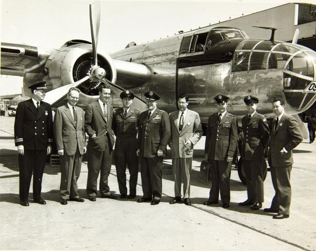 Keywords: brigadier general clarence s. bill irvine special collection photo brigadiergeneralclarencesbillirvinespecialcollectionphoto â north american aviation ânorthamericanaviation north american aviation northamericanaviation north american northamerican naa north american b-25 mitchell northamericanb25mitchell north american b-25 northamericanb25 north american mitchell northamericanmitchell mitchell bomber mitchellbomber b-25 mitchell b25mitchell b-25 b25 people Catalog #: 09_02045 Title: Brigadier General Clarence S. ""Bill"" Irvine Special Collection Photo Additional Information: Clarence S. Irvine (center) with eight unidentified men standing in front of North American B-25 aircraft, Brigadier General Clarence Irvine enjoyed a long distinguished military career, mainly involving engineering. He served with the XXI Bomber Command (B-29's) during WWII and continued to serve throughout the 1950s and 1960s. Corporation Name: North American Aviation Tags: Brigadier General Clarence S. ""Bill"" Irvine Special Collection Photo, North American Aviation Repository: San Diego Air and Space Museum Archive Catalog #: 09_02045 Title: Brigadier General Clarence S. ""Bill"" Irvine Special Collection Photo Additional Information: Clarence S. Irvine (center) with eight unidentified men standing in front of North American B-25 aircraft, Brigadier General Clarence Irvine enjoyed a long distinguished military career, mainly involving engineering. He served with the XXI Bomber Command (B-29's) during WWII and continued to serve throughout the 1950s and 1960s. Corporation Name: North American Aviation Tags: Brigadier General Clarence S. ""Bill"" Irvine Special Collection Photo, North American Aviation Repository: San Diego Air and Space Museum Archive |
