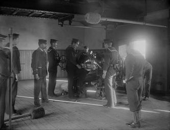 Keywords: coast guard coastguard r.n.r. rnr sailors uniforms moustaches caps tamping artillery guns armaments firing officers defence tramore ireland 1905 1900s cannon 5 inch b.l. mark iii vavasseur 5inchblmarkiiivavasseur broadside mounting broadsidemounting poole collection poolecollection glass negative glassnegative a.h. poole ahpoole arthur henri poole arthurhenripoole doneraile walk donerailewalk munster waterford national library of ireland nationallibraryofireland blackandwhite monochrome black and white Following on from yesterday's photo of the Coast Guard drilling with swords at Tramore, Co. Waterford, here are the same men practising with artillery at the Battery beside Doneraile Walk (thanks to guliolopez and ofarrl for help with locating this photo). We were looking for input from large gun experts - make, model, era... And thanks to David Alan Moore for letting us know that this is a "4inch or 5inch Breech Loading (probably the latter) on a ship's pattern Vavasseur broadside mounting. 1890s onwards." Date: Circa 1905 NLI Ref.: P_WP_1088 Following on from yesterday's photo of the Coast Guard drilling with swords at Tramore, Co. Waterford, here are the same men practising with artillery at the Battery beside Doneraile Walk (thanks to guliolopez and ofarrl for help with locating this photo). We were looking for input from large gun experts - make, model, era... And thanks to David Alan Moore for letting us know that this is a "4inch or 5inch Breech Loading (probably the latter) on a ship's pattern Vavasseur broadside mounting. 1890s onwards." Date: Circa 1905 NLI Ref.: P_WP_1088 |