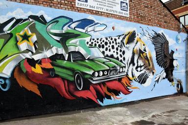 Keywords: bristol street art graffiti banksy tyre homage gage outdoor Nick Kelly Nick Kelly
