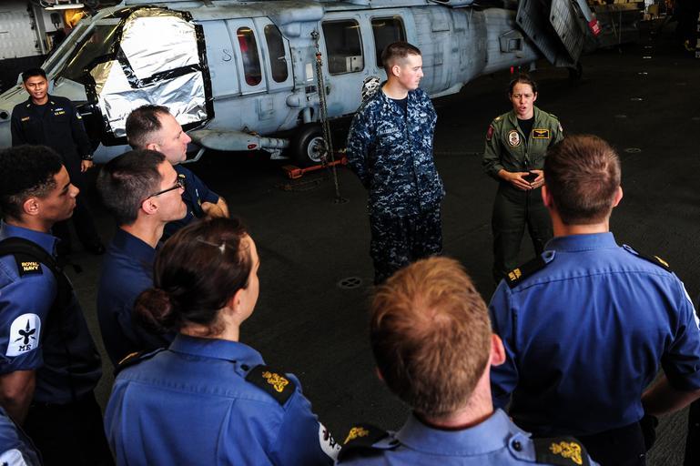 Keywords: British sailors tour USS Boxer 131116-N-SV688-044.jpg en Lt Cmdr Pam Donovan safety officer of the amphibious assault ship USS Boxer LHD 4 gives a safety briefing to Royal Navy sailors attached to HMS Bulwark L 15 during a tour of the ship Boxer is a flagship for the Amphibious Ready Group and with the embarked 13th Marine Expeditionary Unit 31st MEU is deployed in support of maritime security operations and theater security cooperation efforts in the U S 5th Fleet area of responsibility U S Navy photo by Mass Communication Specialist 3rd Class Brian Jeffries/Released 2013-11-16 Petty Officer 2nd Class Brian Jeffries https //www dvidshub net/image/1062609 131116-N-SV688-044 2013-11-28 04 29 ARABIAN SEA AT SEA PD-USGov-Military-Navy 13th Marine Expeditionary Unit USS Boxer LHD-4 Images from DoD uploaded by Fæ |