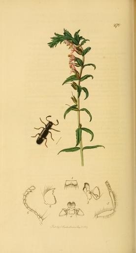 Keywords: Britishentomologyvolume2Plate270.png Opilus Fasciatus Tarsostenus univittatus<br/> Bartsia Odontites Odontites vernus Bartsia odontites Red Barsia s of the genera of insects found in Great Britain and Ireland containing coloured figures from nature of the most rare and beautiful species and in many instances of the plants upon which they are found Vol II http //www archive org/details/britishentomolog2182340curt Coleoptera Part II plate 270 creator John Curtis entomologist 1823-1840 PD-old-100 Tarsostenus univittatus-Curtis png British Entomology Volume 2 John Curtis Tarsostenus univittatus Odontites vernus |