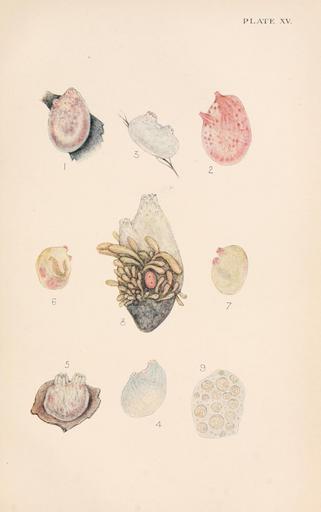 | Keywords: BritishTunicataPlate15.jpg en Alder Joshua Embleton Dennis Hancock Albany Hopkinson John Norman Alfred Merle 1905-12 The British Tunicata; an unfinished monograph by the late Joshua Alder and the late Albany Hancock Edited by John Hopkinson with a history of the work by the Rev A M Norman London Printed for the Ray society Volume 1 Plate 15 FIGS 1 and 2 Ascidia scabra Mull p 128 1 - Test natural size 2 “ Mantle slightly enlarged accepted name Ascidiella scabra O F Müller 1776 3 and 4 Ascidia scabra var albida A and H p 311 3 “ Test natural size 4 “ Mantle slightly enlarged 5-7 Ascidia scabra var echinata p 132 5 - Test slightly enlarged 6 and 7 Views of mantle of another individual slightly enlarged 8 and 9 A affinis A and H p 136 8 Test natural size 9 - A affinis accepted as Ascidiella aspersa Müller 1776 http //www biodiversitylibrary org/ Alder and Hancock s 1850 Joshua Alder and Albany Hancock British Tunicata Volume 1 Ascidiella scabra Ascidiella aspersa PD-old |