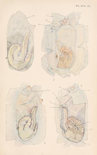 | Keywords: BritishTunicataPlate9.jpg en Alder Joshua Embleton Dennis Hancock Albany Hopkinson John Norman Alfred Merle 1905-12 The British Tunicata; an unfinished monograph by the late Joshua Alder and the late Albany Hancock Edited by John Hopkinson with a history of the work by the Rev A M Norman London Printed for the Ray Society Volume 2 Plate 22 PLATE IX Ascidia venosa Müll p 102 synonym for Ascidia virginea Müller 1776 FIG 1 The mantle 2 Test and mantle laid open The tentacles tentacular collar endostyle on right branchial tubercle oral lamina with gland under nerve-ganglion opposite b s and mouth c are shown 3 Test laid open showing apertures of mantle intestine blood vessels leading to test c 4 Mantle with most of branchial sac laid open - ™ opening of female duct ™‚ opening of male duct The pointer from r t is carried in error across the vessel About two and a half times natural size EXPLANATION OF THE LETTERING all plates br Branchial aperture br s Branchial sac b t Branchial tubercle en Endostyle i Intestine m Mantle mo Mouth n g Nerve-ganglion oe Esophagus od Oviduct o l Oral lamina t Test t c Tentacular collar tn Tentacles ts Testis v Ovary v t Blood-vessels leading to test http //www biodiversitylibrary org/ Alder and Hancock s 1850 Joshua Alder and Albany Hancock British Tunicata Volume 1 Tunicata anatomy Ascidia virginea PD-old Ä– |