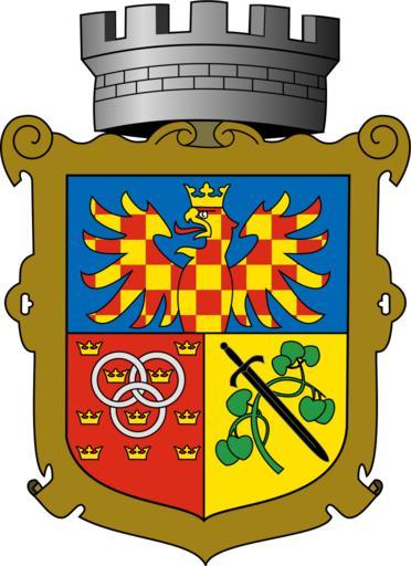 Keywords: Brno-Královo pole znak.svg Dělený štít v dolní polovině polcený v horním modrém poli vyrůstá z dělící čáry polovina korunované zlatě a červeně šachované orlice v dolním pravém červeném poli tři prostupující se stříbrné kruhy provázené deseti zlatými korunkami v dolním levém zlatém poli kosmo položen černý meč zkřížený se zelenou lipovou ratolestí štít obklopuje ozdobná bronzová obruba nad štítem hradební koruna s pěti zuby Znak městské části Brna-Králova pole Coat of arms of Brno-Královo_pole city district of Brno the city in the Czech Republic own code Czenek PD-CzechGov Brno-Královo Pole Created with Inkscape Crowns in heraldry Mural crowns in crest Crowned eagles in heraldry Eagles chequy Swords in heraldry SVG coats of arms of municipalities of the Czech Republic Coats of arms of districts of Brno Derivatives of the Coat of arms of Moravia |