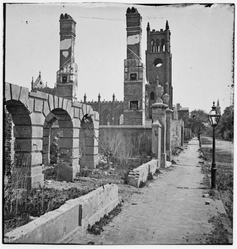 | Keywords: Broad Street Charleston South Carolina 1865.jpg en View of Broad Street Charleston South Carolina 1865 looking east with the ruins of the Cathedral of St John and St Finbar visible Glass wet collodion negative The Library of Congress Washington D C http //memory loc gov/service/pnp/cwpb/02300/02399v jpg Author 1865 PD-old American Civil War destruction in Charleston South Carolina 1865 in South Carolina Cathedral of Saint John and Saint Finbar Charleston South Carolina | ||||