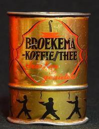Keywords: Broekema Koffie-Thee loodje, blikken maatbekertje, foto2.JPG Very old product that is not produced and not sold any more Note that some tins may look the same but when looked for carefully there are some slight differences Photographed at a collector of Droste memorabilia and old tin cans For more info see http //www tincollectors nl/ tincollectors nl or email info tincollectors nl own 2014-02-08 11 08 30 Alf van Beem CC-Zero Trademarked Broekema |