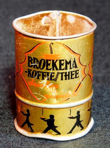 Keywords: Broekema Koffie-Thee loodje, blikken maatbekertje, foto5.JPG Very old product that is not produced and not sold any more Note that some tins may look the same but when looked for carefully there are some slight differences Photographed at a collector of Droste memorabilia and old tin cans For more info see http //www tincollectors nl/ tincollectors nl or email info tincollectors nl own 2014-02-08 11 18 03 Alf van Beem CC-Zero Trademarked Broekema |