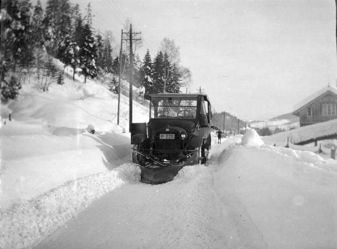 | Keywords: bil plog snø brøyting vei vinter auto car snow winter snow plow snowplow brødrene øveraasen brødreneøveraasen brøytebil sauland notodden blackandwhite monochrome outdoor snowbank black and white Beskrivelse: Brøytebil i arbeid År: 1926 Fotograf: Ukjent Fotografier fra Arbeidsdepartementet, Veikontoret, eske Fj 177, mappe 4. Mappen har tittel: A/S Brødrene Øveraasens Bilploger. Arkivreferanse: S-1194_Fj177_4_47 Description: "Snow plowing the road between Sauland and Notodden, February 1926" Photographer: Unknown Photograps from the Ministry of Public Works, Public Roads Office. In 1923, Hans and Even Øveraasen of Norway constructed an early snowplow for use on cars. This proved to be the start of a tradition in snow-clearing equipment for roads, railways and airports, as well as the foundation of the company Øveraasen Snow Removal Systems. Beskrivelse: Brøytebil i arbeid År: 1926 Fotograf: Ukjent Fotografier fra Arbeidsdepartementet, Veikontoret, eske Fj 177, mappe 4. Mappen har tittel: A/S Brødrene Øveraasens Bilploger. Arkivreferanse: S-1194_Fj177_4_47 Description: "Snow plowing the road between Sauland and Notodden, February 1926" Photographer: Unknown Photograps from the Ministry of Public Works, Public Roads Office. In 1923, Hans and Even Øveraasen of Norway constructed an early snowplow for use on cars. This proved to be the start of a tradition in snow-clearing equipment for roads, railways and airports, as well as the foundation of the company Øveraasen Snow Removal Systems. |