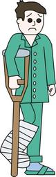 Keywords: broken cartoon cast comic characters crutch hospital leg limb man patient request complete sad surgical
