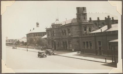 | Keywords: watt state records nsw staterecordsnsw archives newsouthwales blackandwhite broken hill brokenhill far west farwest museum town hall townhall post office postoffice cars monochrome photo border outdoor black and white Broken Hill to Sydney Oct October 1931 - Broken Hill Mining Museum, Town Hall and Post Office (from the photograph album of L.G. Watt - NSW Board of Fire Commissioners) Dated: 16/10/1931 Digital ID: 549_a029_a029000467 Rights: No known copyright restrictions www.records.nsw.gov.au/about-us/rights-and-permissions We'd love to hear from you if you use our photos/documents. Many other photos in our collection are available to view and browse on our website using Photo Investigator. Broken Hill to Sydney Oct October 1931 - Broken Hill Mining Museum, Town Hall and Post Office (from the photograph album of L.G. Watt - NSW Board of Fire Commissioners) Dated: 16/10/1931 Digital ID: 549_a029_a029000467 Rights: No known copyright restrictions www.records.nsw.gov.au/about-us/rights-and-permissions We'd love to hear from you if you use our photos/documents. Many other photos in our collection are available to view and browse on our website using Photo Investigator. |