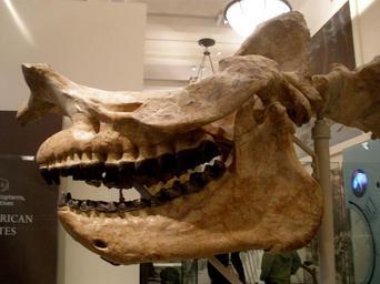 Keywords: Brontops robustus.JPG Skull of Brontops robustus took the foto on the American Museum of Natural History in New York 2008-04 Ghedoghedo GFDL cc-by-sa-3 0 Megacerops fossils Fossils in the American Museum of Natural History