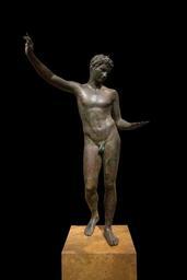 | Keywords: Bronze athlete NAMA X15118 Athens Greece.jpg en Bronze statue of a young athlete found in the sea off Marathon Attica One of the masterpieces of the Late Classical period associated with the school of Praxiteles About 340 - 330 BCE N° X 15118 Praxitèle vers 340 - 330 av J -C institution National Archaeological Museum of Athens n°X 15118 2015-05-20 16 24 09 own Jebulon other versions cc-zero Uploaded with UploadWizard Marathon Boy Quality images by Jebulon Black background QualityImage | ||||