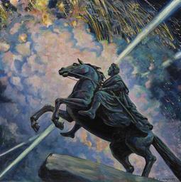 | Keywords: Bronze Horseman by Kustodiev.jpg Бо ис Кустодиев Салют едный всадник Ка тон масло Лот выставленный на усских то ах Sotheby s в ью-Йо ке с эстимейтом 3 4 млн е п одан © Sotheby s 2011 год http //www artguide ru/ru/news/110 20 век Б Кустодиев Paintings by Boris Kustodiev The Bronze Horseman in art Private collections of Russian art PD-Art |