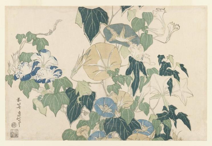 | Keywords: Brooklyn Museum - Morning Glories in Flowers and Buds - Katsushika Hokusai.jpg Artwork Creator Katsushika Hokusai Morning Glories in Flowers and Buds between 1828 1832 Woodblock color print cm 24 8 37 3 Institution Brooklyn Museum Brooklyn Museum location asia Frank L Babbott Fund Zen Holusai I-itsu hitsu signature ja inscription Kiwame censor seal ja Eijudo Publisher's seal ja http //www brooklynmuseum org/opencollection/objects/51874/Morning_Glories_in_Flowers_and_Buds Online Collection of Brooklyn Museum; Photo Brooklyn Museum 41 603_IMLS_PS3 jpg 41 603 Brooklyn_Museum-no_known_restrictions PD-old-100 Katsushika Hokusai Asian art in the Brooklyn Museum |