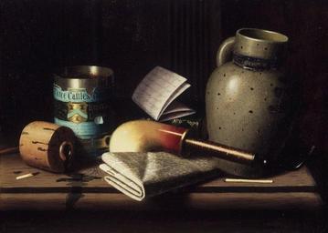 Keywords: Brooklyn Museum - Still Life with Three Castles Tobacco - William Michael Harnett - overall.jpg Artwork Creator William Michael Harnett Still Life with Three Castles Tobacco ~ 1880 oil canvas cm 27 3 38 1 Museum Brooklyn Museum Dick S Ramsay Fund Still Life bottom left W M HARNETT 1880 http //www brooklynmuseum org/opencollection/objects/629/Still_Life_with_Three_Castles_Tobacco Online Collection of Brooklyn Museum; Photo Brooklyn Museum 41 221 jpg 41 221 Brooklyn_Museum-no_known_restrictions PD-old-100 William Michael Harnett 1880 oil on canvas paintings in the United States Paintings from the United States Still life paintings in the Brooklyn Museum Harnett Newspapers in art Pottery Pipes smoking 1880s still-life paintings |