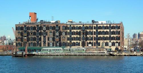 Keywords: brooklyn new york city urban trolly train mass transit transportation buildings structures skyline river water nature outside shoreline architecture