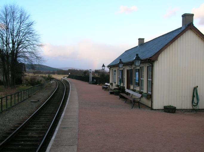 | Keywords: Broomhill station.JPG en Broomhill station on the Strathspey Steam Railway Scotland This was closed in the Beeching cuts but has been gradually restotred and re-opened by enthusiasts who now run their steam mainly trains between Aviemore and Broomhill through Boat of Garten The station at Broomhill was used for the BBC's Monarch of The Glen series when Archie would arrive from London at GlenBogle There are signs at the station for both real and fictional names The Strathspey Steam railway intends extending the line to Grantown on Spey which is 4 miles further on from Broomhill Own Rosser1954 Roger Griffith 2009-03-15 Broomhill railway station |