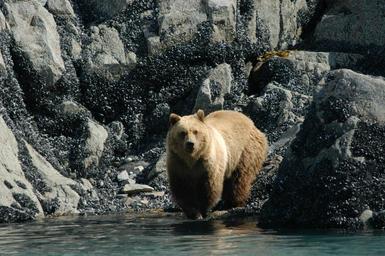 Keywords: brown bear adult portrait wildlife nature looking up furry wild mammal outdoors rocks water park national usa wilderness