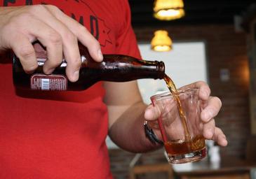 Keywords: brown beer glass hand beverage liquid