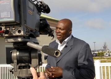 Keywords: Bruce Smith at Naval Station Norfolk 2009-10-13 1.JPG Former National Football League player Bruce Smith speaks to members of the media Oct 13 2009 during his visit to the Vista Point Club at Naval Station Norfolk Va Smith who was recently inducted into the NFL hall of fame met with U S Sailors at the base and thanked them for their service to the United States http //www defenseimagery mil/imagery html guid 7aa46b3662e09e7e9c7796abb9b30b68114a7774 2009-10-13 MC3 John Suits USN PD-USGov-Military-Navy Personality rights Files by User BrokenSphere Bruce Smith Naval Station Norfolk |