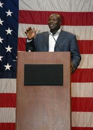 Keywords: Bruce Smith at Naval Station Norfolk 2009-10-13 2.JPG Former National Football League player Bruce Smith speaks U S Sailors Oct 13 2009 during his visit to the Vista Point Club at Naval Station Norfolk Va Smith who was recently inducted into the NFL hall of fame is meeting with the Sailors to thank them for their service to America http //www defenseimagery mil/imagery html guid 7de7b69a7be6d0fba0606b1c8d5cac464152f82d 2009-10-13 MC3 John Suits USN PD-USGov-Military-Navy Personality rights Files by User BrokenSphere Bruce Smith Naval Station Norfolk |