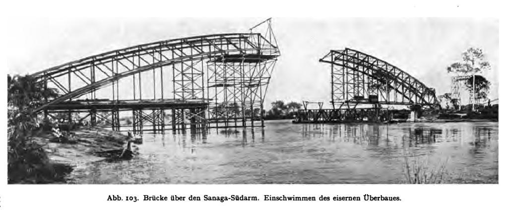| Keywords: Brücke über den Sanaga Sud Ein Schwimmen des Eisernen Uberbaues.png en Floating the Iron superstructure of the bridge over the South Sanaga River Japoma Bridge Cleaned up cropped and sharpened From an old German book in 1916 before 1916 likely 1911 Die Kolonialbahnen mit besonderer Berücksichtigung Afrikas Google Books http //books google ca/books/about/Die_Kolonialbahnen_mit_besonderer_Ber C3 BCc html id M1HbnQEACAAJ redir_esc y author PD-US PD-Old Uploaded with UploadWizard Edea bridge |