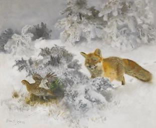 Keywords: Bruno Liljefors - Fox and Black Grouse hen in winter landscape.jpg Artwork en Fox and Black Grouse hen in winter landscape sv Räv och orrhöna i vinterlandskap creator Bruno Liljefors Oil canvas cm 58 70 http //auktionsverket se/auction/fine-arts/2010-12-08/2523-bruno-liljefors-1860-1939-vinterlandskap-med-rav-o/ Stockholms Auktionsverk PD-old-auto 1939 Paintings by Bruno Liljefors with birds Paintings by Bruno Liljefors with foxes Black Grouse in art Winter landscape paintings Paintings of birds in Sweden Oil paintings of birds Landscape paintings of Sweden Foxes hunting in art |