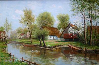 Keywords: Bruno Moras - Kanal im Spreewald im Frühling.jpg Artwork Creator Bruno Moras oil canvas cm 79 119 object history credit line accession number http //www lot-tissimo com/de/i/2769885 PD-old-auto 1939 Bruno Moras Spreewald in art Spring landscape paintings Paintings of German villages |