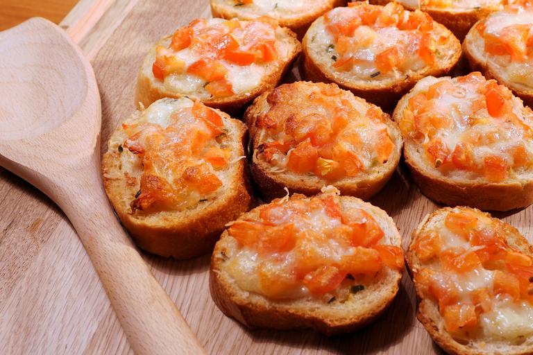 Keywords: bruschetta tomatoes frisch eat cheese mozzarella baguette bread starter garlic finger food food court delicious parmesan tasty gastronomy italian bake scalloped meal brunch