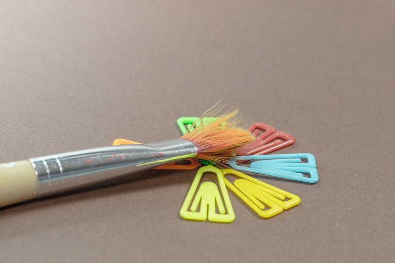 | Keywords: brush paint colorful art color watercolour painting watercolour painting watercolor painter draw image artwork hair brush still life brush bristles office brush hair paper clips tacks macro datailaufnahme close macro photo stationery items mess clip office accessories |
