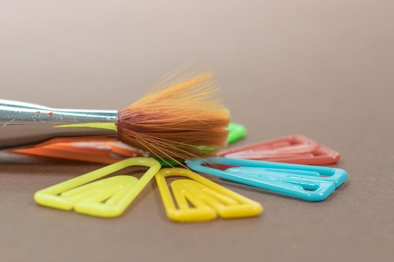 | Keywords: brush paint colorful art color watercolour painting watercolour painting watercolor painter draw image artwork hair brush still life brush bristles office brush hair paper clips tacks macro datailaufnahme close macro photo stationery items mess clip office accessories |