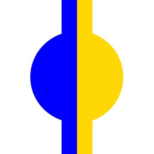 Keywords: BSicon BHF yellow-blue.svg en Used for Melbourne tram route maps to show zone 1/2 stops 2011-10-05 own Liamdavies cc-zero s/set yellow-blue