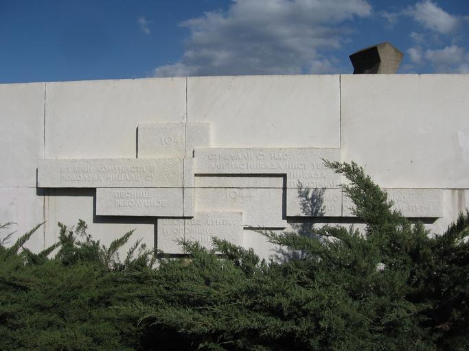 | Keywords: Bubanj-Reljef-Detalj 5.jpg sr Детаљ са ељефа пети с лева на десно <br> а ме ме не четво оуглове у езани су следећи стихови 1041 п ви део <br> ИЗ КРВИ КО У ИСТА И<br> РОДОЉУБА ИЦАЛЕ СУ<br> ПЕС ИЦЕ<br> РЕВОЛУЦИЈЕ<br> ПЕС ИЦЕ БУ ТА<br> И ОПО Е Е<br> ПЕС ИЦЕ<br> СЛОБОДЕ<br> 1044 д уги део <br> СТРЕЉАЛИ СУ АС <br> АЛИ АС ИКАДА ИСУ УБИЛИ<br> ИКАДА ПОКОРИЛИ <br> И С О ПОРАЗИЛИ РАК<br> СУ ЦУ ОСЛОБОДИЛИ ПУТ<br> Own FriedrickMILBarbarossa 2010-04-05 Bubanj Memorial Park Unassessed QI candidates | ||||