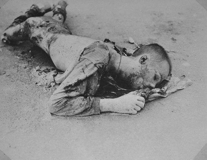Keywords: Buchenwald Leipzig-Thekla Corpse.jpg A charred corpse in the Leipzig-Thekla sub-camp of Buchenwald The body is possibly that of an American POW 19 April “ May 1945 04413 author PD-USGov Buchenwald Leipzig-Thekla concentration camp Images from the United States Holocaust Memorial Museum National Archives at College Park |