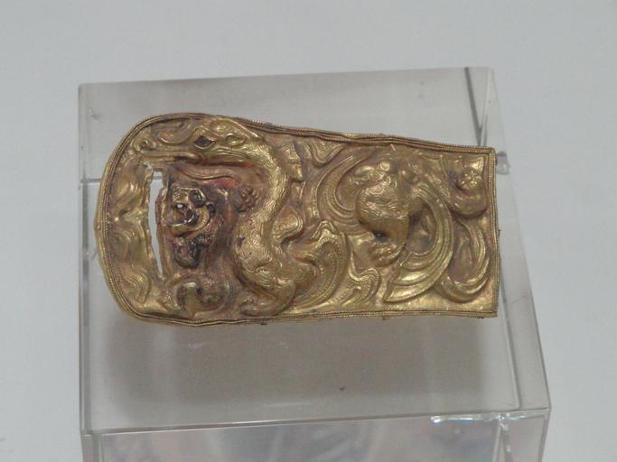 Keywords: Buckle (gold, Western Han) - Yunnan Provincial Museum - DSC02295.JPG Exhibit in the Yunnan Provincial Museum Kunming Yunnan China I took this photograph 2011-08-09 01 17 39 Daderot Public domain Antiquities in the Yunnan Provincial Museum