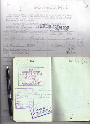 | Keywords: Bud Uanna A Declassified Document Cover Sheer with Passport p.1.jpg en While on home leave in Washington January 1961 where he attended the inauguration of President Kennedy Bud Uanna also visited the U S Department of State's Passport Office His passport was stamped by Frances G Knight - Director of the Passport Office Ms Knight would be called before the Warren Commission to explain among other things a memorandum dated December 26 1961 - 4 days after Bud Uanna died in Addis Ababa Ethiopia The memorandum was sent to William O Boswell in the Office of Security SY It involved Lee Harvey Oswald's return to the United States from the Soviet Union Her testimony can be viewed on the JFK Assassination Center's web site under List of Witnesses and Testimony Much of Oswald's history relating to the Soviet Union is discussed and downplayed It would be brought up as evidence against him almost immediately after President Kennedy was assassinated Ms Knight's testimony is almost comical when weighed against the restrictions against other U S citizens Paul Robeson for example Uanna's son does not believe that Lee Harvey Oswald assassinated President Kennedy He accepts what Oswald said about himself in the hallway of the Dallas Texas Police Headquarters - I'm just a patsy 2014-08-30 09 06 15 U S Department of State Security and Passport Office 1961 U S Department of State Security Files and Passport Office Frances G Knight PD-USGov Uploaded with UploadWizard Bud Uanna |