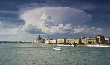 Keywords: budapest hungary summer river view of the city sky clouds danube architecture