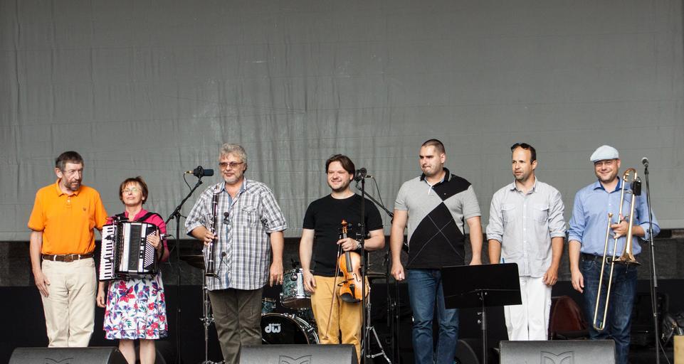 Keywords: Budapest Klezmer Band-2.jpg Budapest Klezmer Band at the open-air production in front of the Örkény Theatre A Budapest Klezmer Band az Örkény-kert rendezvényen Photo by Szilas 2014-08-30 Szilas Commonist Budapest Klezmer Band