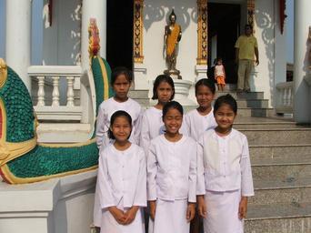 Keywords: Buddha Thai.jpg Buddha Thai likes to add white shirt goes to the temple Uttaradit Thailand ชาวพุทธในประ ทศไทยนิยมใส่ชุดขาว ข้าวัดไปปฏิบัติธรรม โดยการใส่ชุดขาวมีความหมายถึงการชำระใจให้บริสุทธิ์ own 2006 Photo by User Tevaprapas 2007 Girls of Thailand Wat Khung Taphao Group photographs of children White clothing female |