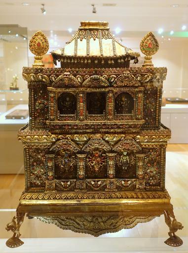 Keywords: Buddhist altar, Nepal, c. 1800 AD, gilded brass with inlaid precious stones - Ethnological Museum, Berlin - DSC01856.JPG en Exhibit in the Ethnological Museum Berlin Germany Photography was permitted in the museum without restriction 2014-11-11 10 09 16 own Daderot other versions cc-zero Art of Nepal in the Ethnological Museum Berlin Uploaded with UploadWizard |