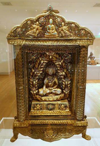 | Keywords: Buddhist shrine, Nepal, c. 1800 AD, embossed bronze sheet with precious stones - Ethnological Museum, Berlin - DSC01861.JPG en Exhibit in the Ethnological Museum Berlin Germany Photography was permitted in the museum without restriction 2014-11-11 10 09 45 own Daderot other versions cc-zero Art of Nepal in the Ethnological Museum Berlin Uploaded with UploadWizard | ||||