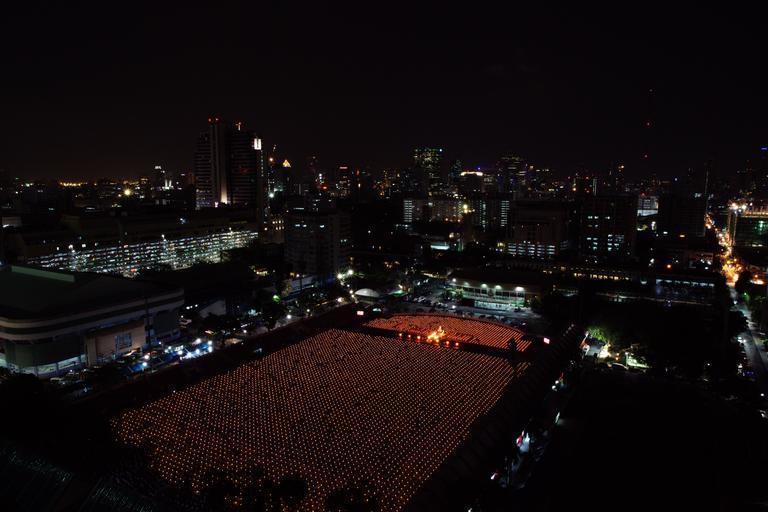 Keywords: buddhists monks ceremony convention meeting many praying meditating group people meditate peace traditions thailand candles