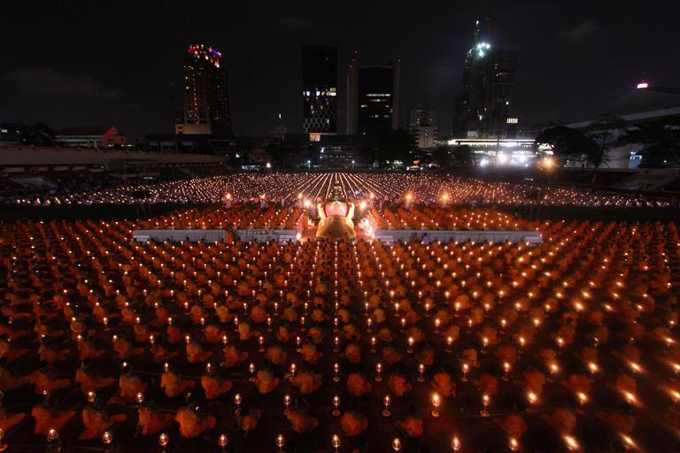 Keywords: buddhists monks ceremony convention meeting many praying meditating group people meditate peace traditions thailand candles