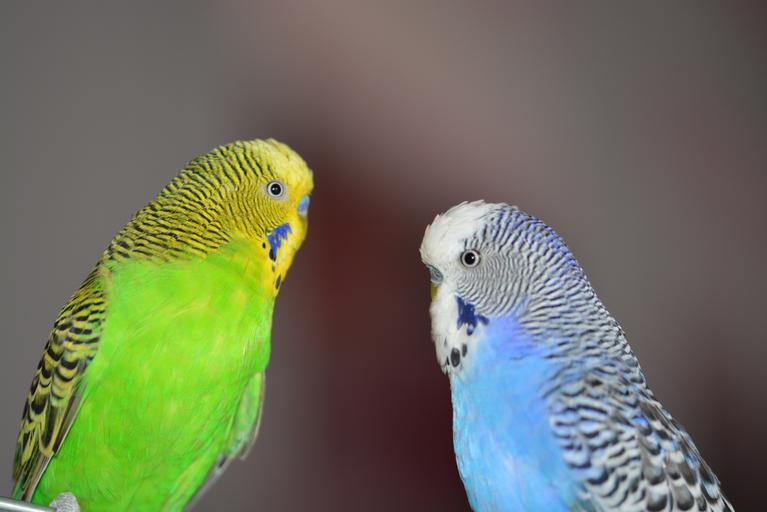 Keywords: budgerigars blue bird parakeets pets animal world birds close green couple animal
